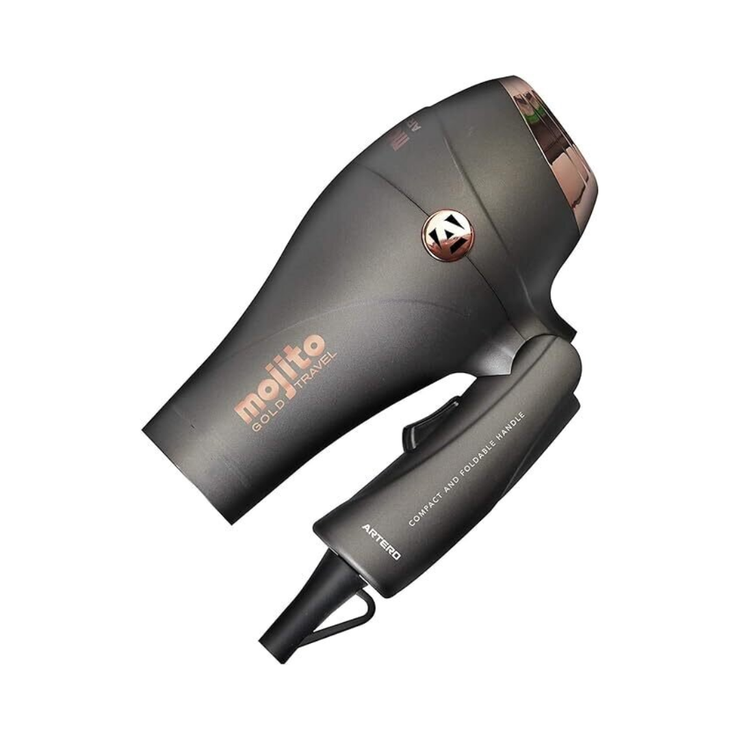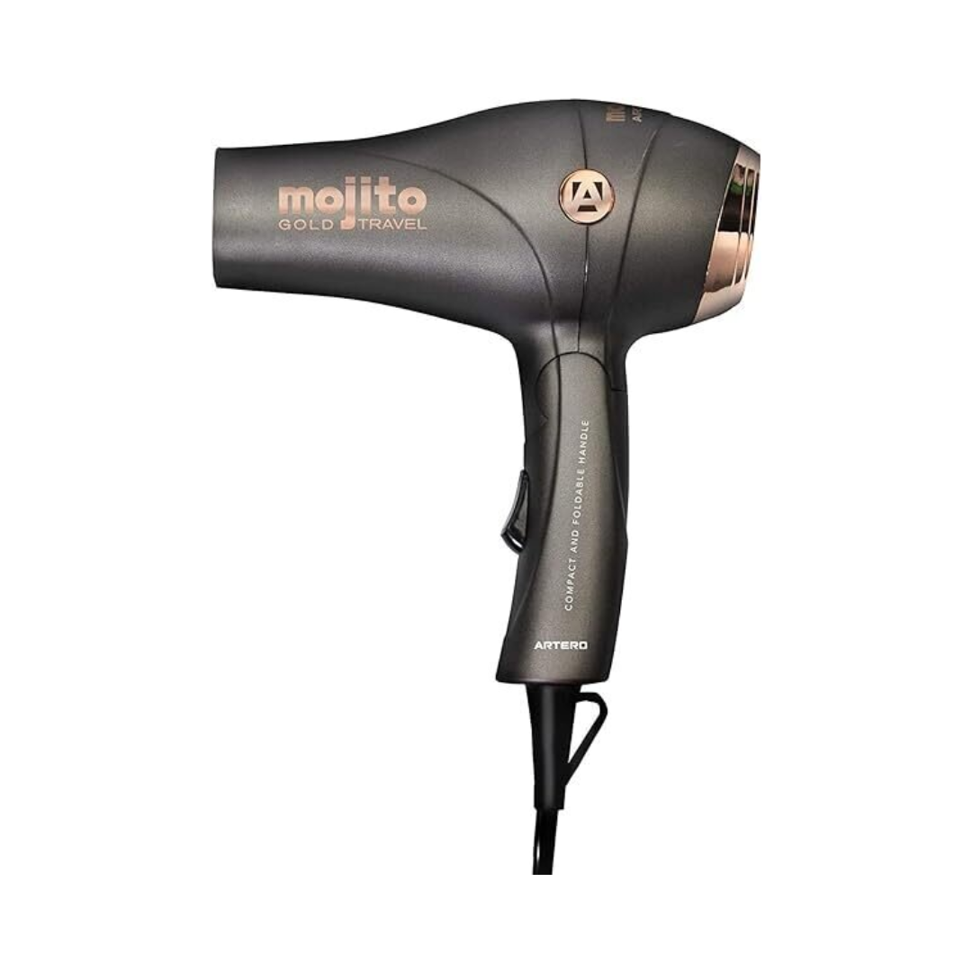 ARTERO MOJITO – компактен сгъваем сешоар с йонизираща технология и турмалинова керамика за блестяща и мека коса без фриз ефект. Лек, стилен и мощен – идеален за пътуване.