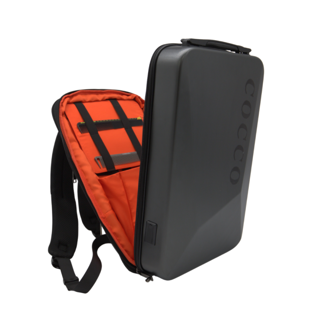 Раница Cocco за инструменти е универсална раница, създадена специално за пътуващи бръснари и мобилни професионалисти. Твърдият ѝ корпус, елегантният дизайн и TSA сертифицираната ключалка осигуряват максимална защита на оборудването. С множеството отделения и вградени USB и USB-C портове, раницата позволява удобно съхранение и зареждане на всички необходими инструменти по време на работа или път.